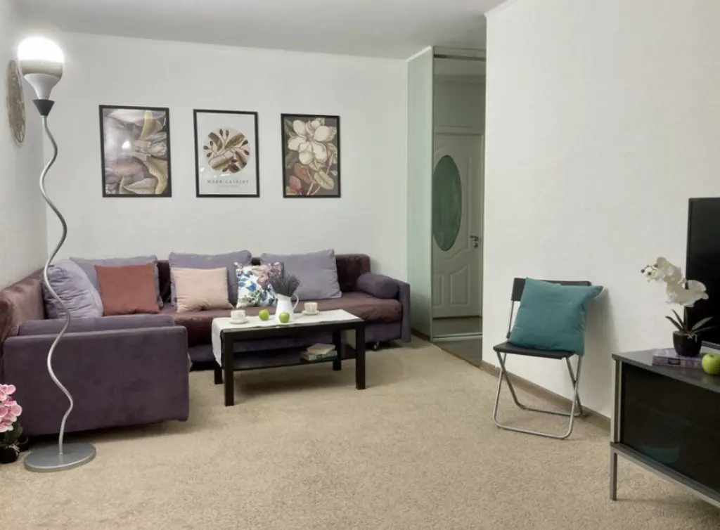 Просторная и светлая 2-комнатная квартира площадью 48 м² с кухней 6 м². Подходит для командированных гостей и семей с детьми.