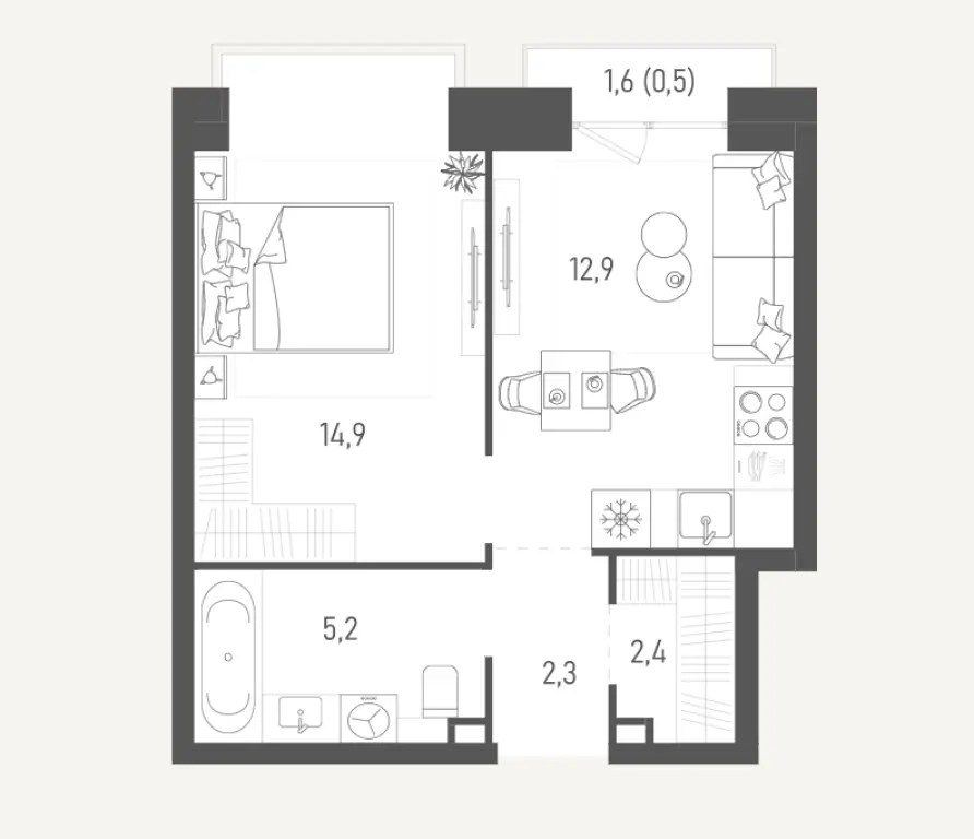 Преимущества планировки: Общая площадь 38,2 м² позволяет организовать полноценное пространство для жизни или работы. Просторная комната (спальня/гостиная) дает свободу для дизайнерских решений.