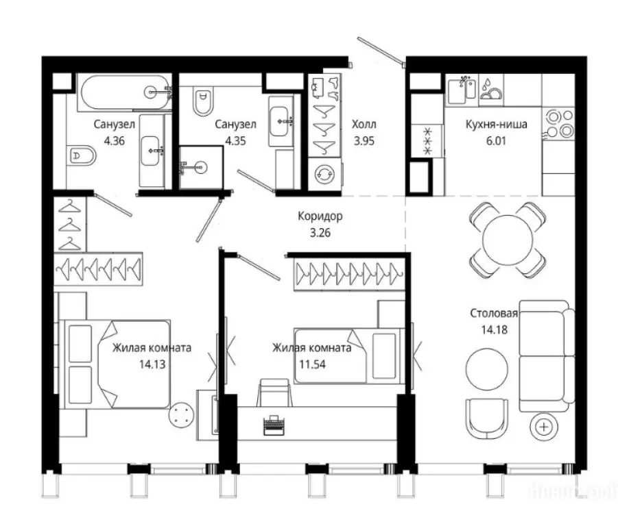 Просторная 2-комнатная квартира общей площадью 61.9 кв. м в монолитно-кирпичном доме. Проект от известного девелопера MR Group (МР Групп) гарантирует современные архитектурные решения и безупречное качество отделки мест общего пользования. Квартира с идеальной геометрией комнат готова стать уютным гнездом для вашей семьи.