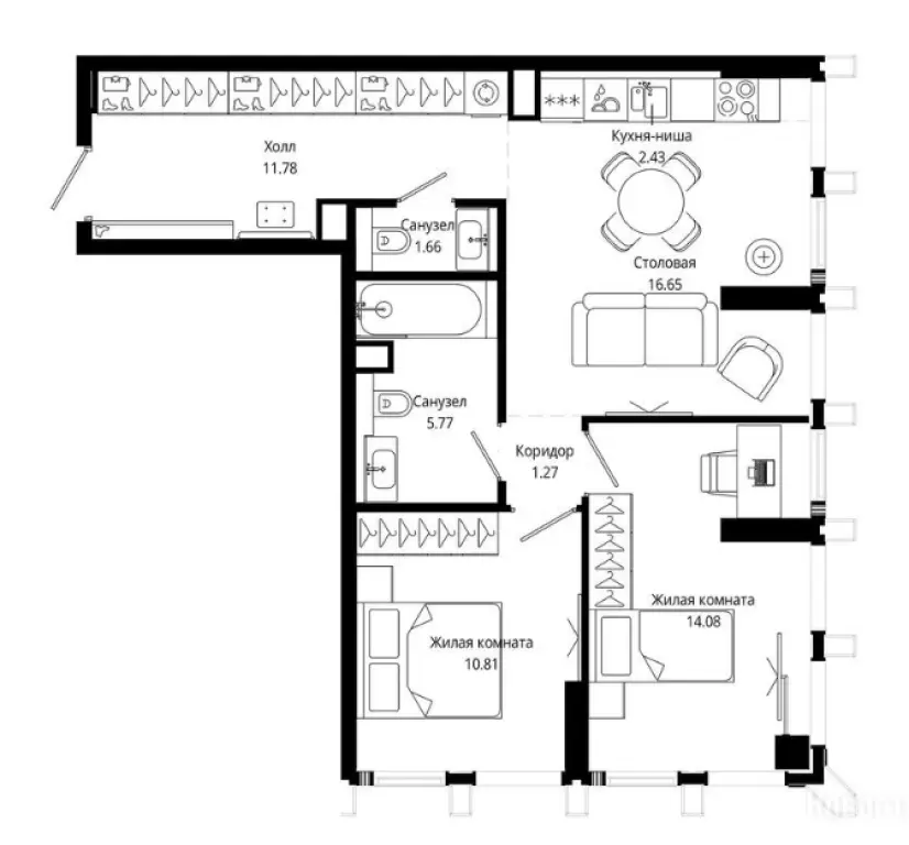 📐 Площадь: 64,8 кв. м — идеальный метраж для современной квартиры-студии с отдельными комнатами или просторной евродвушки.