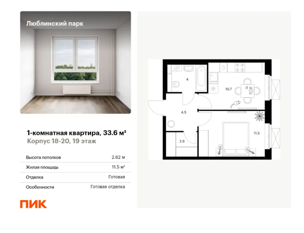 Сбалансированная площадь: 33.6 кв. м достаточно для комфортной жизни одного человека или молодой пары.
