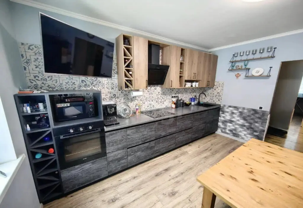 Просторная кухня-гостиная (17,4 м²), изолированные спальни (13, 10, 17, 18 и 8,7 м²), два санузла с теплыми полами, кладовая. Выполнена профессиональная разводка электрики. Квартира полностью готова к заселению: мебель и техника (кроме кухонного гарнитура — вопрос обсуждаемый) остаются новым владельцам.
